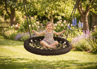 Denne sansegynge med en diameter på 120 cm er udviklet til brug på skole og institutionsområdet samt til offentlige legepladser, hvor der stilles høje krav til holdbarhed, sikkerhed og brugervenlighed.